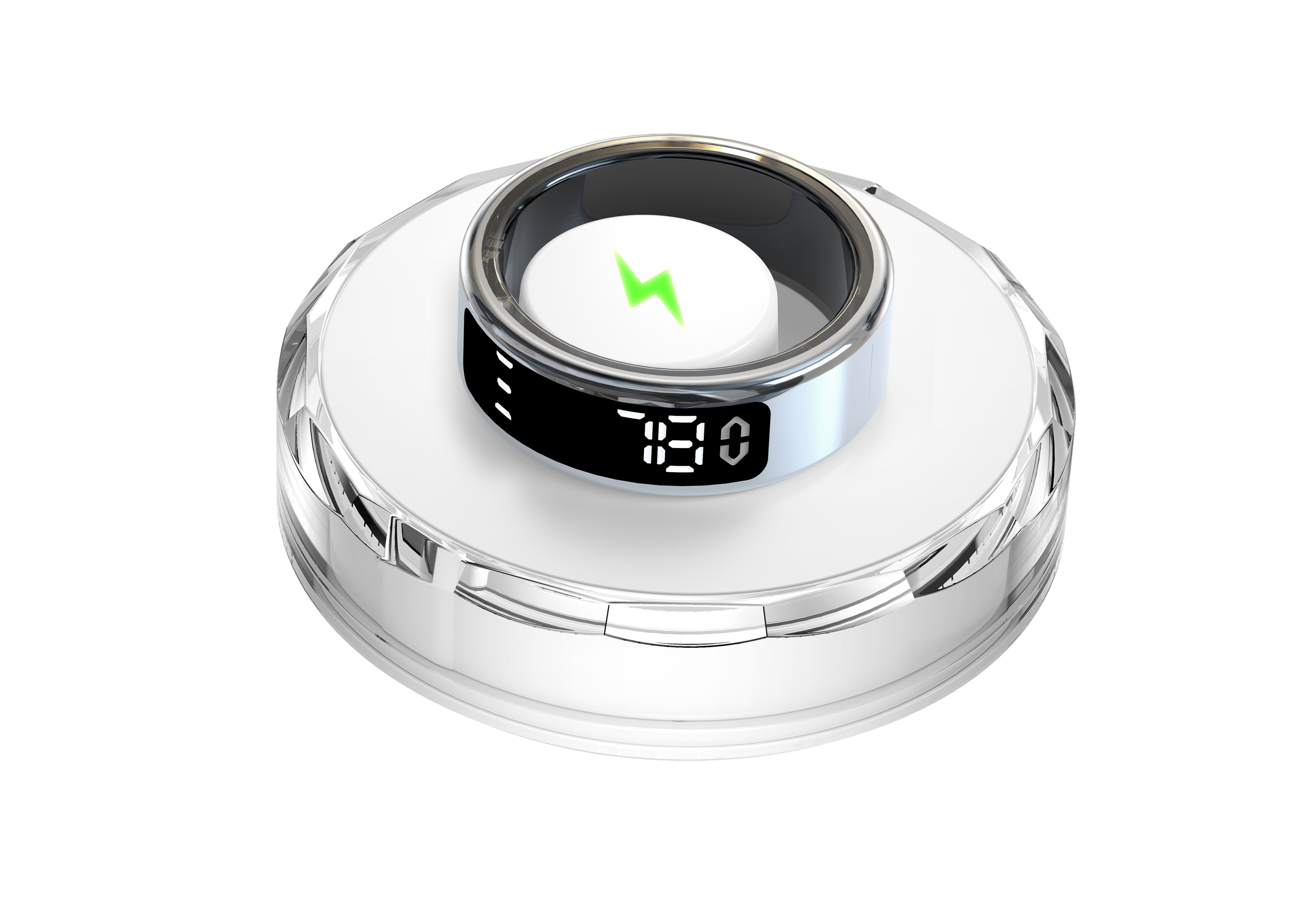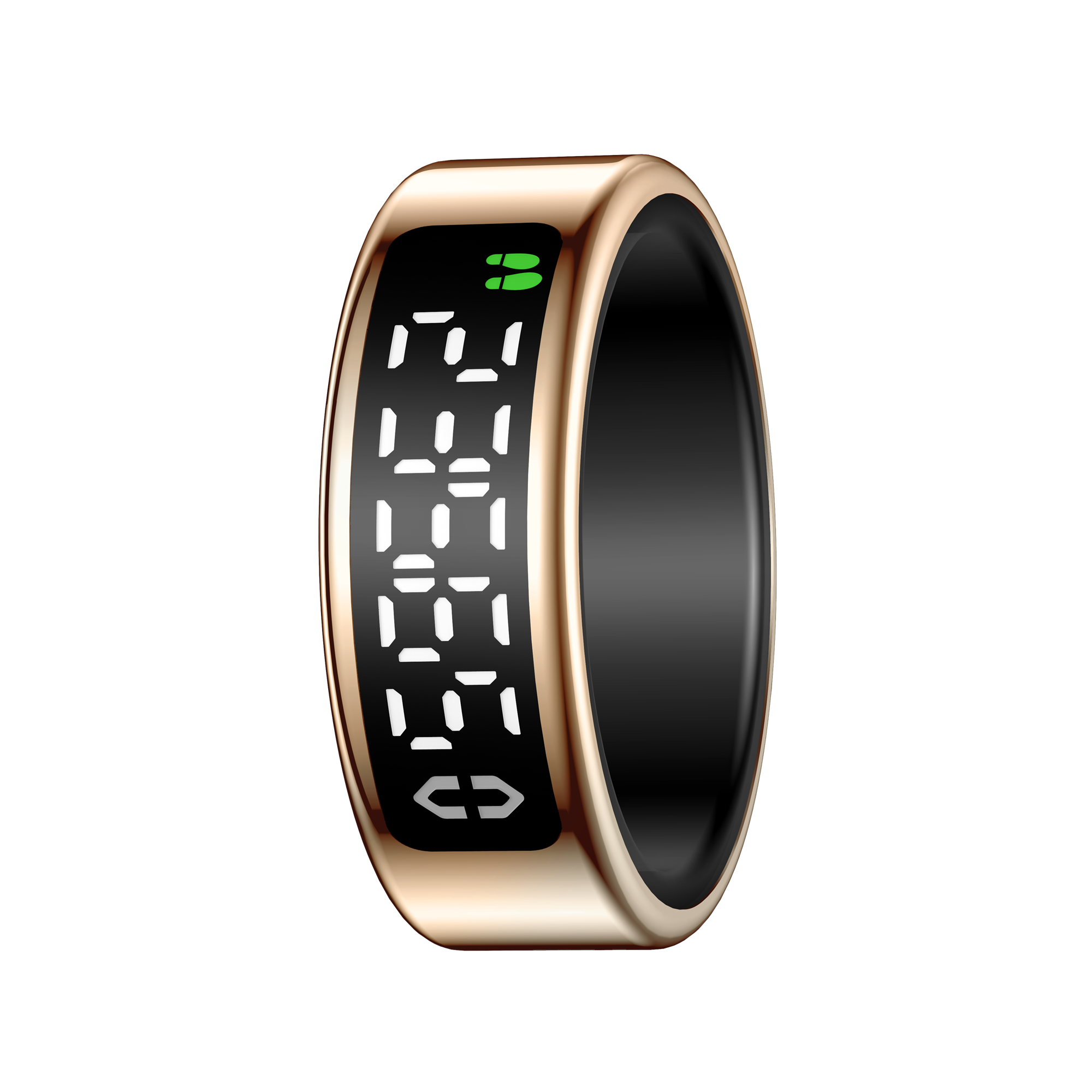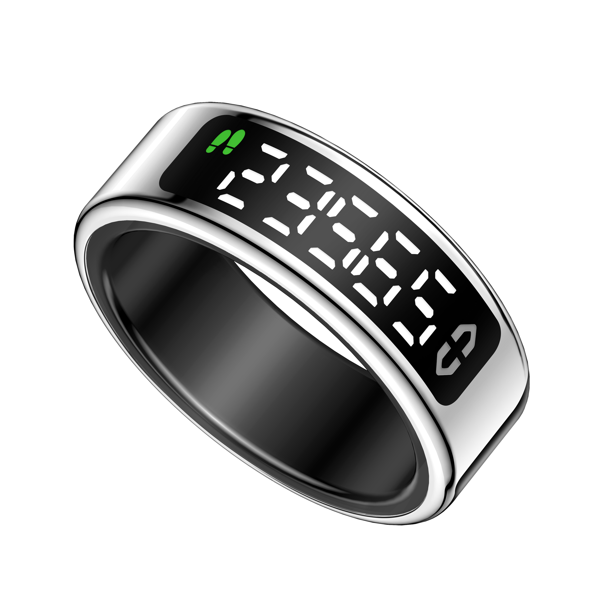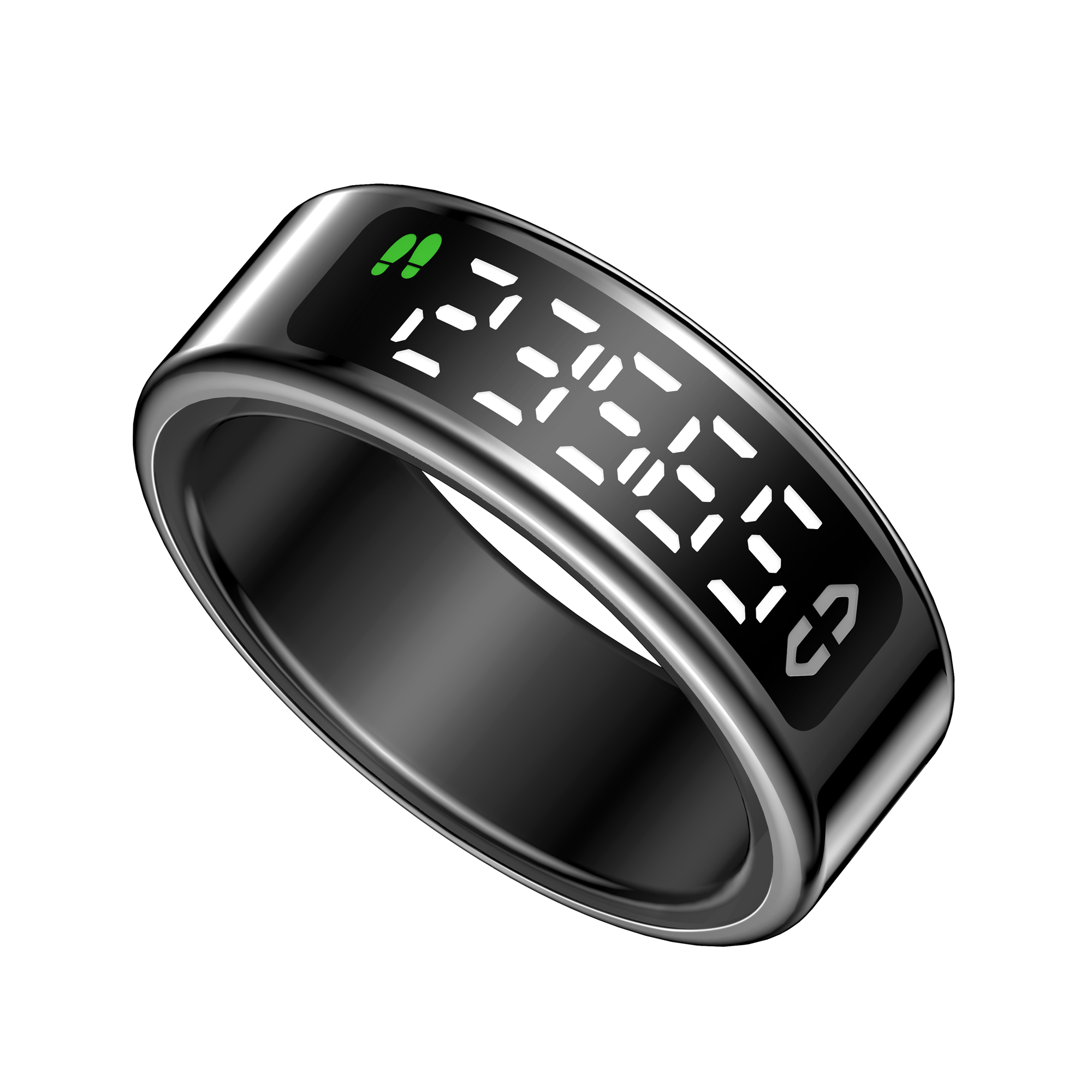 这款集健康监测与智能交互于一体的智能指环,以轻薄便携的设计融入日常,成为你的贴身健康管家与生活助手。指环搭载高清显示屏,时间、步数、心率、血氧、睡眠时长及剩余电量等核心信息一目了然,无需繁琐操作,抬腕即可快速读取,让健康数据可视化触手可及。