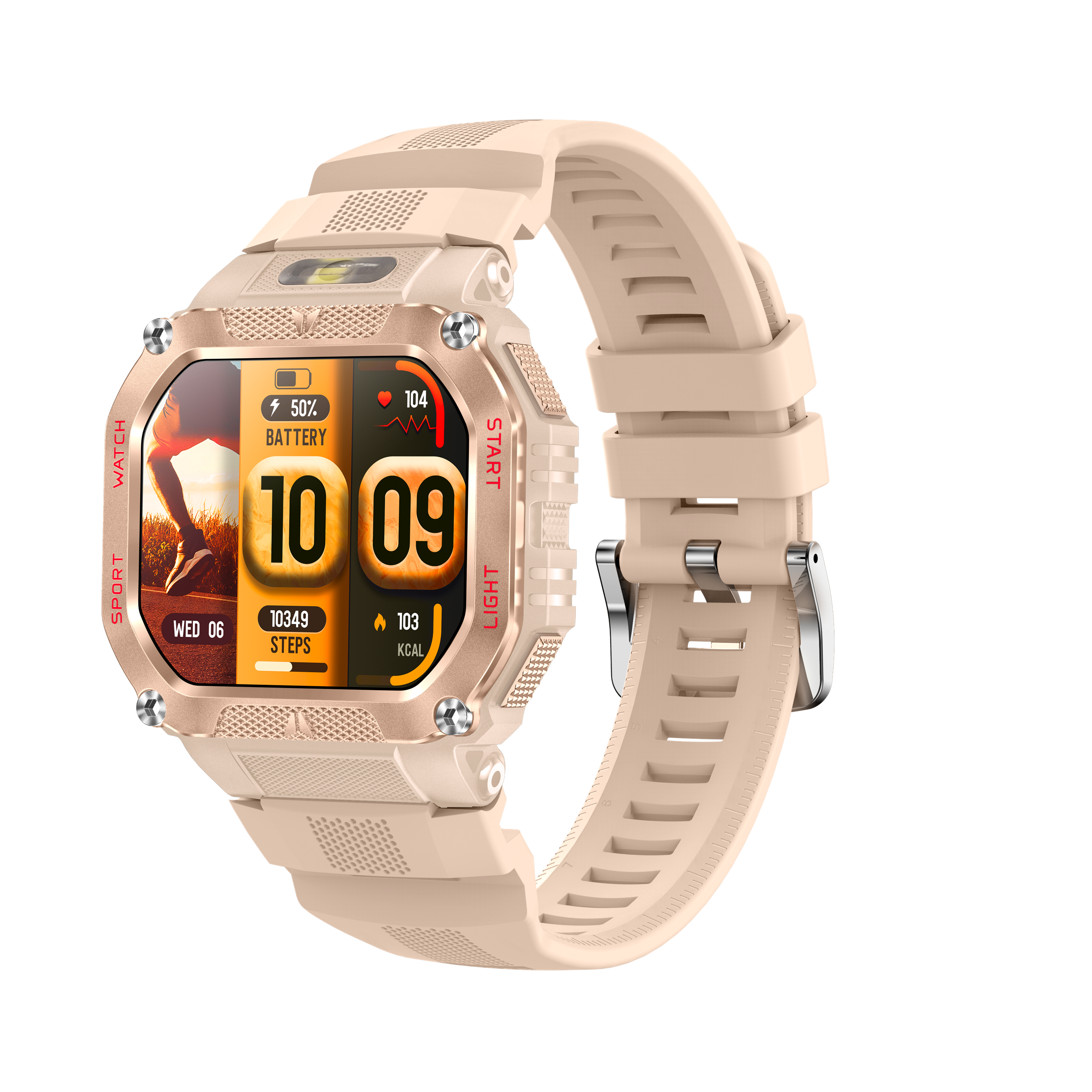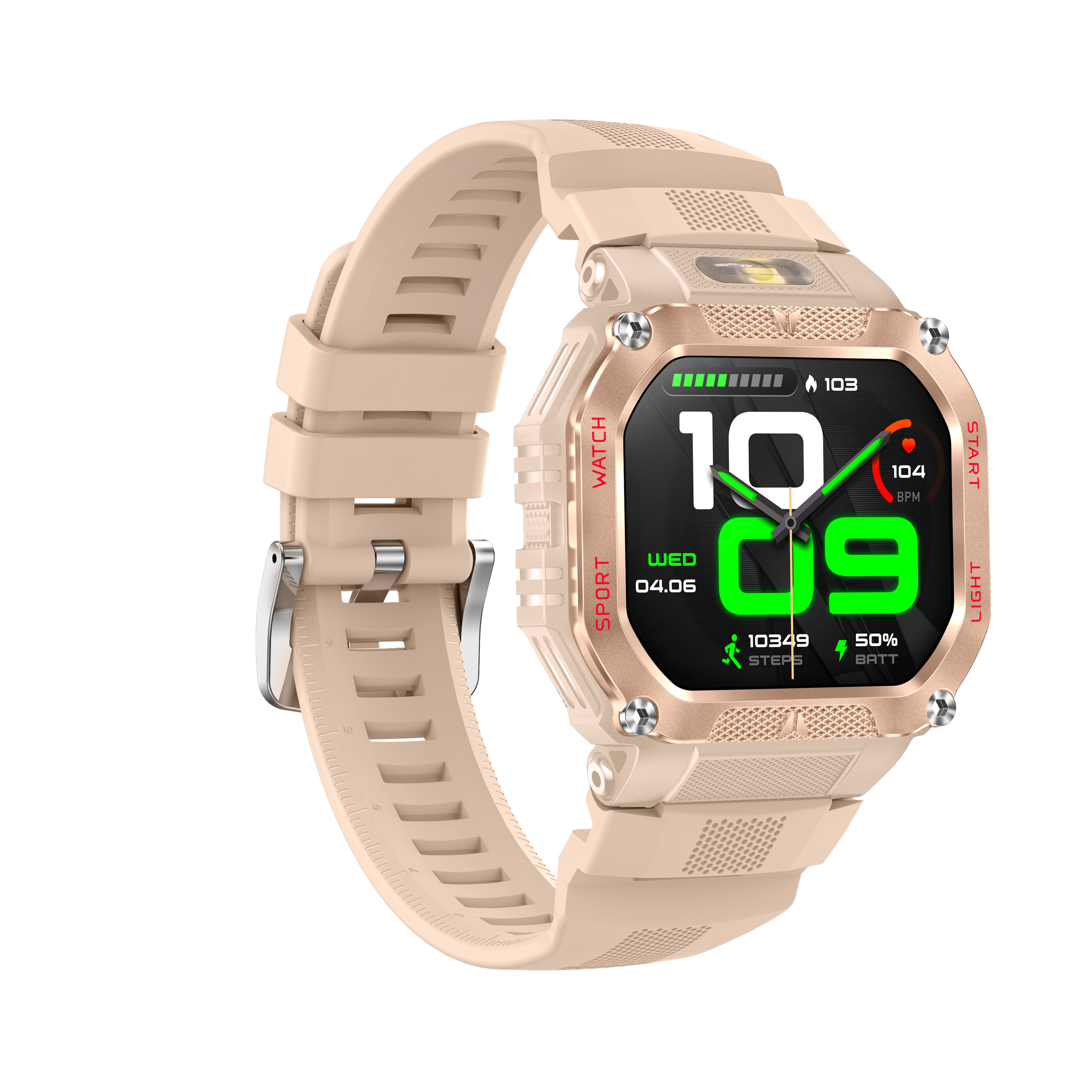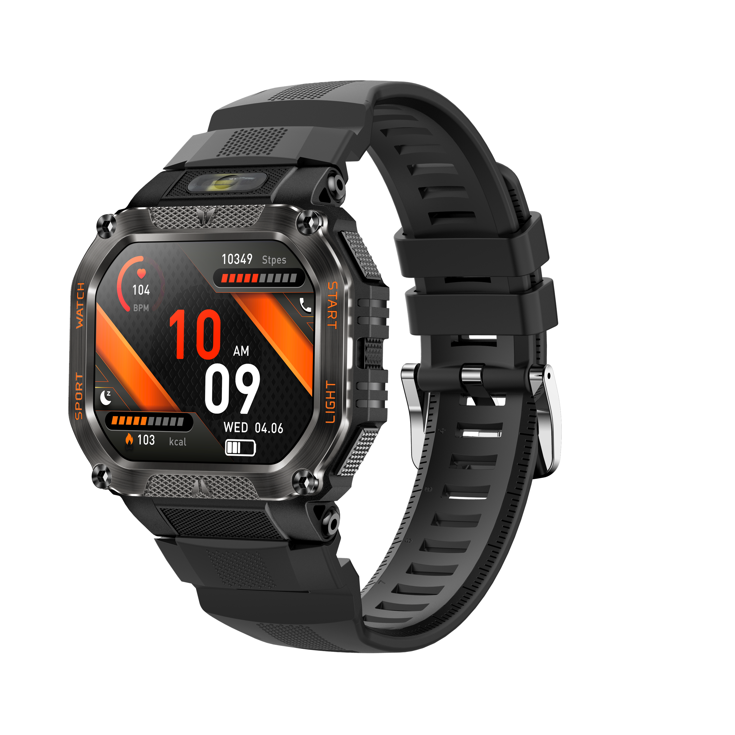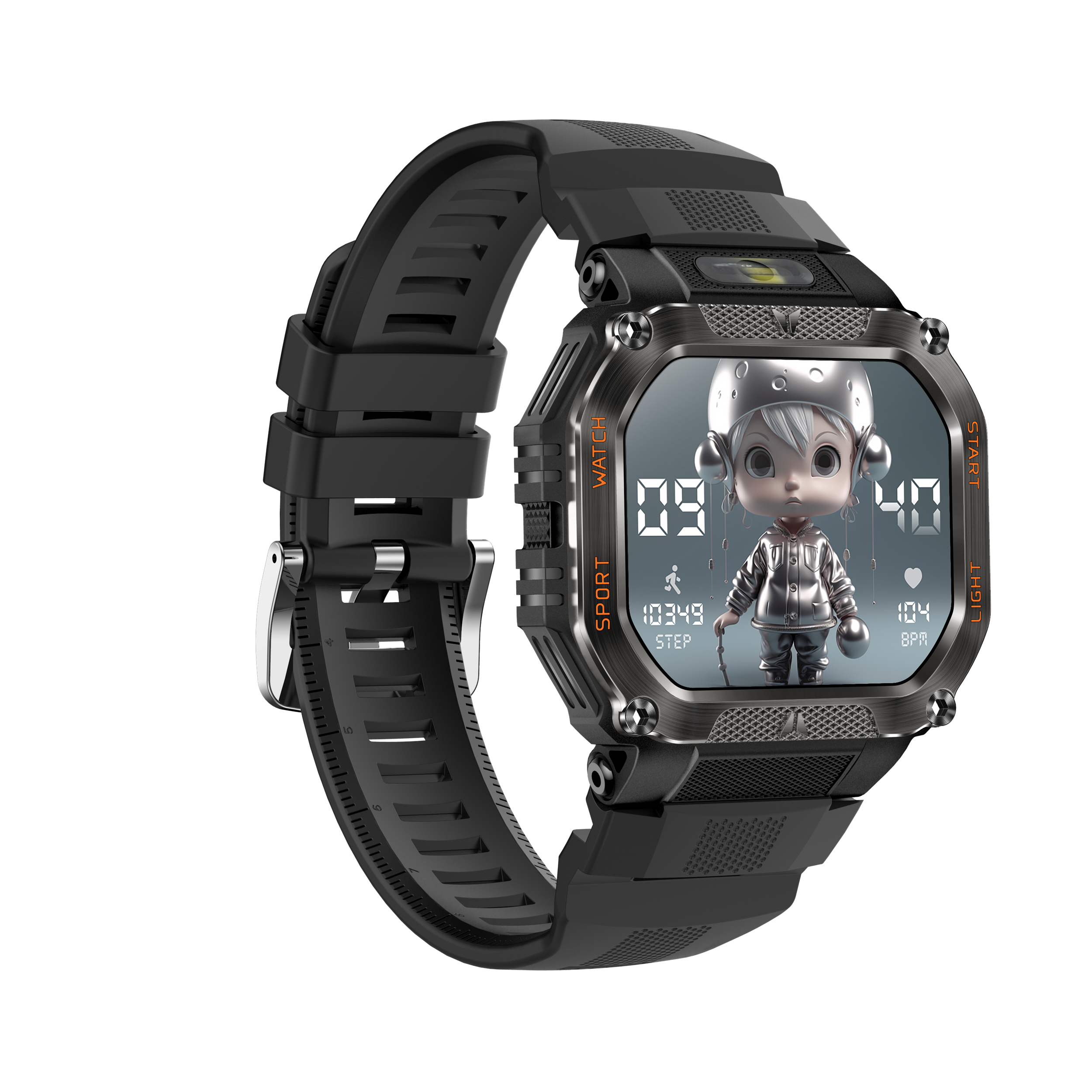 这款智能穿戴设备硬核感拉满!宽屏显示清晰直观,搭配硬朗金属一体机身,酷炫又耐用。内置480mAh 大容量电池,续航给力,强光手电筒加持,户外应急超实用。