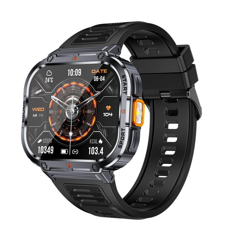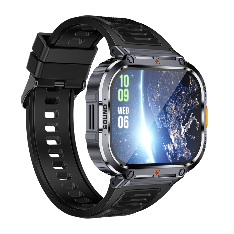 这款智能手表颜值与实力双在线!2 英寸超大宽屏清晰直观,高端金属一体机身酷炫硬朗,质感拉满。内置400mAh 大容量电池,搭配强光手电筒,日常使用与户外应急都靠谱。